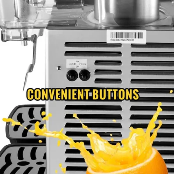 HÖG EFFEKTIVITET – Med en helkopparsrörskondensator och en högkvalitativ kompressor kyler denna juice-dispenser snabbt och effektivt. Den kan hålla drycken vid en behaglig temperatur mellan 5-12°C (41-53,6°F). Enkla knappar på baksidan gör det bekvämt att ställa in kyl- och rörfunktionerna.