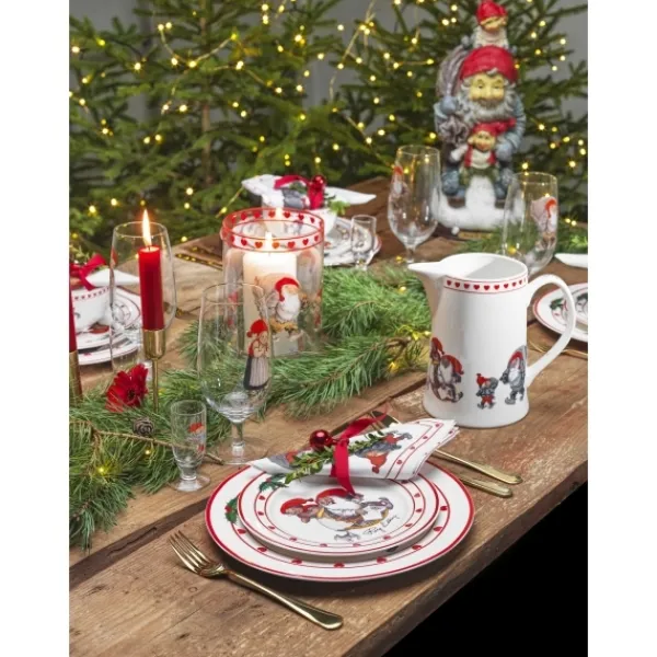 Stilren glöggkolv från Rolf Lidbergs julservis. Kolven pryds av illustrationer föreställande tomtefar med familj i olika situationer.