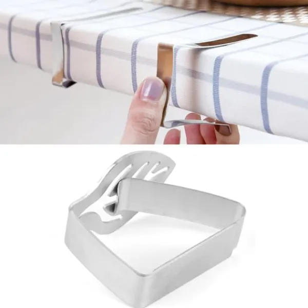 – Lätt att använda, öppna helt enkelt käftarna, kläm fast duken och knäpp den på kanten av bordet.