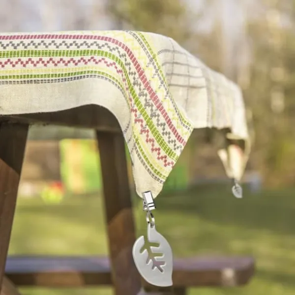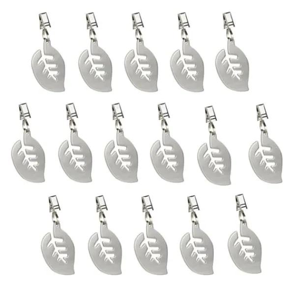 Håll din bordsduk säkert på plats under utomhustillställningar med detta set av dekorativa bordsduksvikter med lövdesign. Dessa vikter i rostfritt stål förhindrar inte bara att duken glider eller blåser bort, utan tillför även en stilren touch till din dukning. Perfekta för trädgårdsfester, picknickar, bröllop och mycket mer, de kan även användas som vikter för gardiner eller duschdraperier.