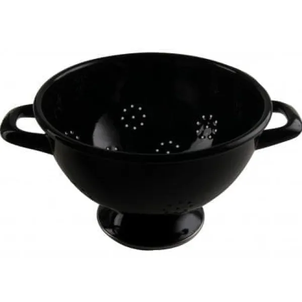 Durkslag i svart emalj Ø 22 cm.