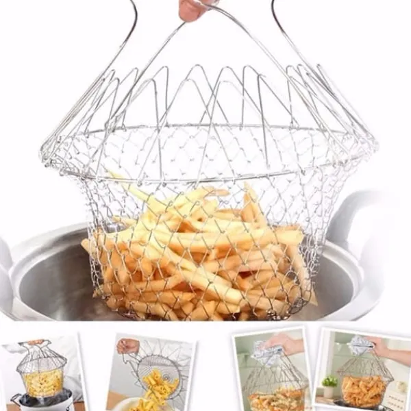 Välkommen till vår butik! Denna hopfällbara friteringskorg gör matlagning enklare och säkrare för alla. Den kombinerar funktionerna hos en ångkokare, djup stekpanna och durkslag, vilket ger bekvämlighet och mångsidighet i köket. Tillverkad av slitstarkt rostfritt stål, hjälper den till att minska risken för brännskador genom att hålla handtaget svalt och utanför kastrullen under användning. Använd den för att tvätta grönsaker, hälla av olja och vatten snabbt, eller för att enkelt laga, koka och steka mat. När den inte används fälls den ihop platt för kompakt förvaring, vilket sparar utrymme. Korgen expanderar direkt från en platt form till ett flexibelt matlagningsverktyg, vilket säkerställer praktisk användning och effektivitet. Produktinformation: Skick: 100 % helt ny, Produkttyp: Hopfällbar friteringskorg, Material: Rostfritt stål, Handtagsstorlek: Ca 15,5 x 13 cm / 6,1 x 5,1 tum, Produktens hopfällbara storlek: Ca 23 x 23 x 2 cm / 9,1 x 9,1 x 0,8 tum, Vikt: Ca 130 g / 4,6 oz. Du får 1 x Hopfällbar friteringskorg. Nöjdhet: Våra kunder är vår högsta prioritet. Om du upptäcker några produktproblem efter att du mottagit varorna, såsom skador eller felaktig mängd varor, vänligen kontakta säljaren omedelbart. Vi gör vårt bästa för att ge dig tillfredsställande kundservice.