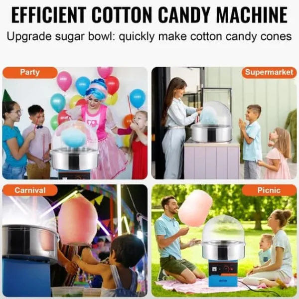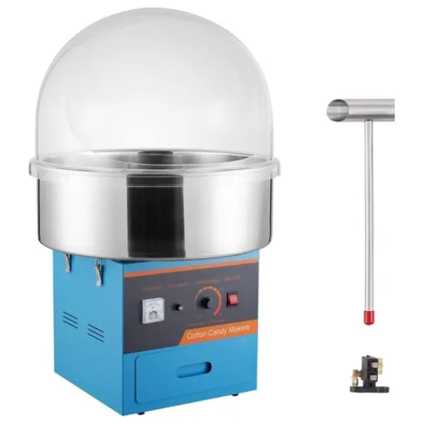 Med denna maskin kan du använda olika typer av godisar, som traditionellt socker, mjölksocker eller frukttärningar, för att skapa läckra sockervaddar. Dess kompakta storlek gör den idealisk för bänkskivan och perfekt för karnevaler, festivaler, födelsedagsfester och sportevenemang.