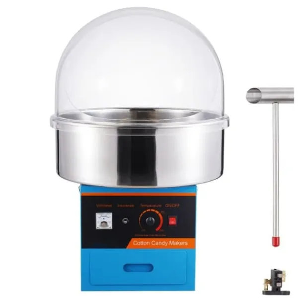 Vår elektriska godisflossmaskin skiljer sig genom att ha en spänningsmätare och en temperaturkontrollratt. Genom att enkelt ändra spänningen kan du justera temperaturen från 244,9°F/118,3℃ till 439,2°F/226,2℃. Det är ett måste om du vill experimentera med olika smaksättningar av socker.