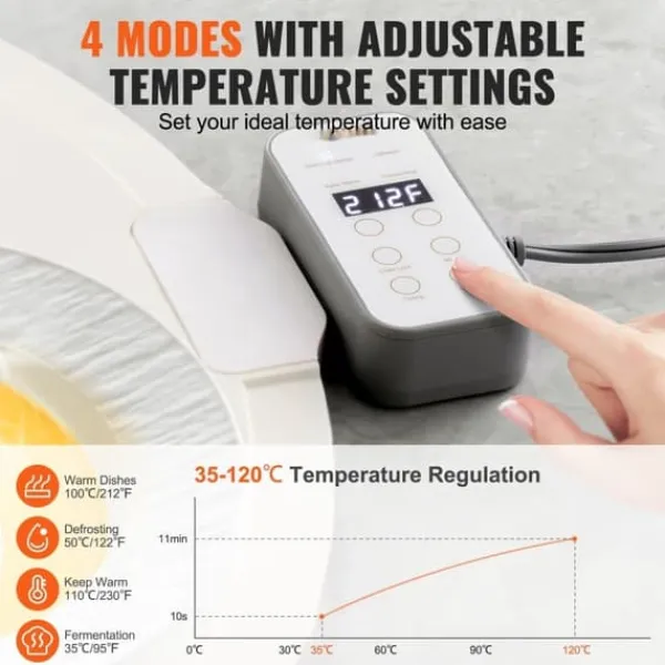För att ge optimal användarupplevelse har denna uppvärmningsbricka enkel temperaturkontroll med 4 funktionslägen och justerbara inställningar. Den realtidsvisar temperaturen för noggrann övervakning och erbjuder flera användbara funktioner som uppvärmning, hålla varmt, tina och jäsa mat. Dess släta yta av högkvalitativt silikonmaterial gör rengöringen till en enkel uppgift – bara torka av olja och matrester. Dess flexibilitet möjliggör enkel förvaring genom att enkelt kunna rullas ihop och spara värdefullt utrymme.