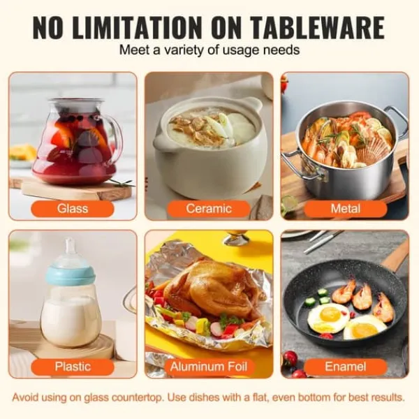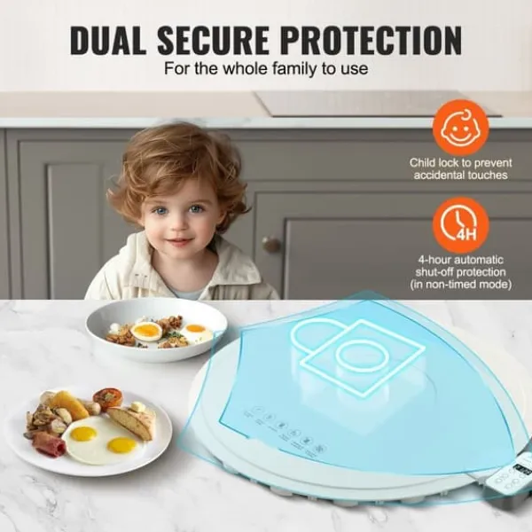 Den praktiska designen inkluderar en barnlåsfunktion för att förhindra oavsiktlig användning och en automatisk avstängningsfunktion efter 4 timmars oavbruten användning, vilket ger maximal säkerhet för hela familjen. Uppvärmningsbrickan är lämplig för olika högtemperaturkärl och är perfekt för fester, födelsedagar, jul och bufféer. Kom ihåg att den inte ska användas på glasbord och att kärlen bör ha en plan botten för snabb och effektiv uppvärmning.