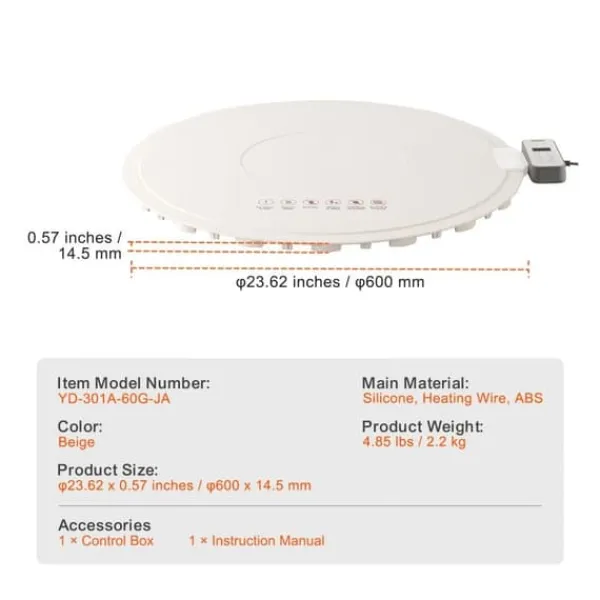 - Produktstorlek: φ23,62″ x 0,57″ / φ600mm x 14,5 mm”