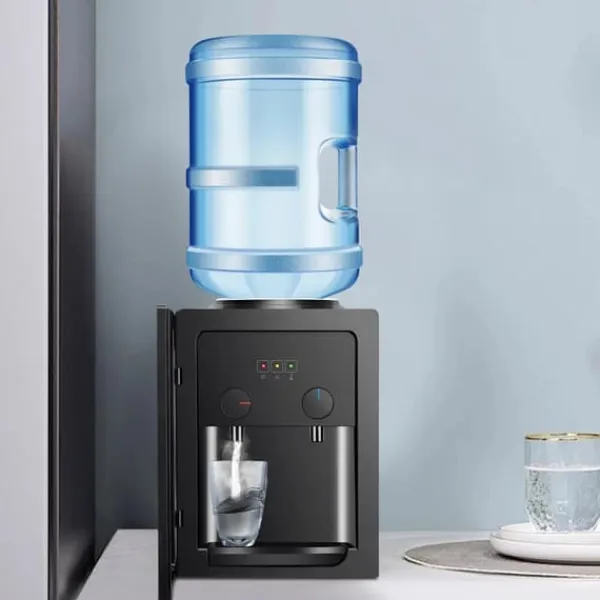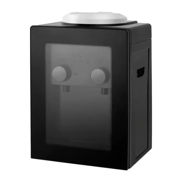 Elektrisk vattendispenser – Svart En kompakt och driftsäker dispenser för hem och kontor, perfekt för skrivbord, nattduksbord, soffbord och barer. Ger snabbt varmt eller svalt vatten när du behöver det – i stilren svart finish.
