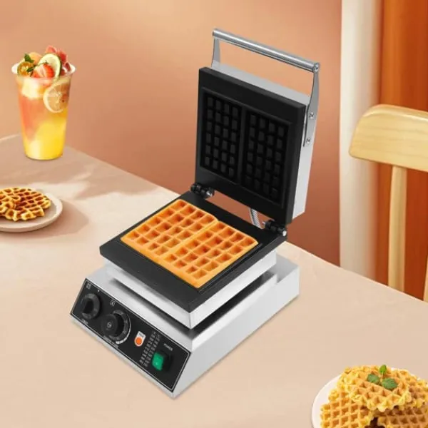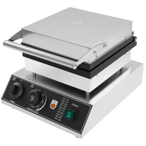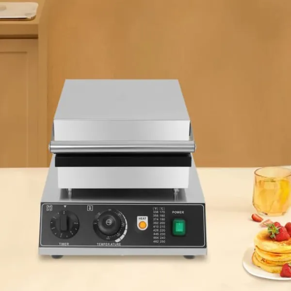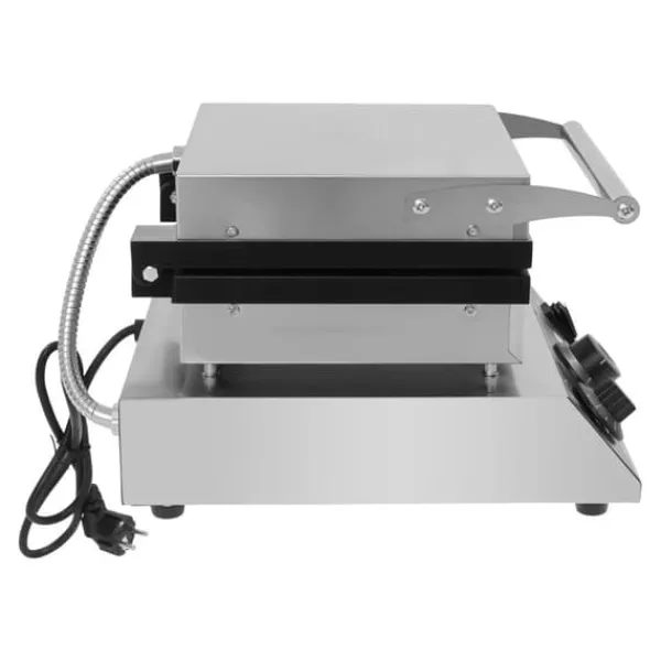 Professionellt dubbelt våffeljärn med exakt kontrollDetta kraftfulla våffeljärn med två rektangulära formar levererar jämnt gräddade våfflor snabbt och pålitligt. Med 2000 W, nonstick-plattor samt tids- och temperaturreglage är det perfekt för caféer, foodtrucks och kök som kräver hög kapacitet och konsekvent kvalitet.