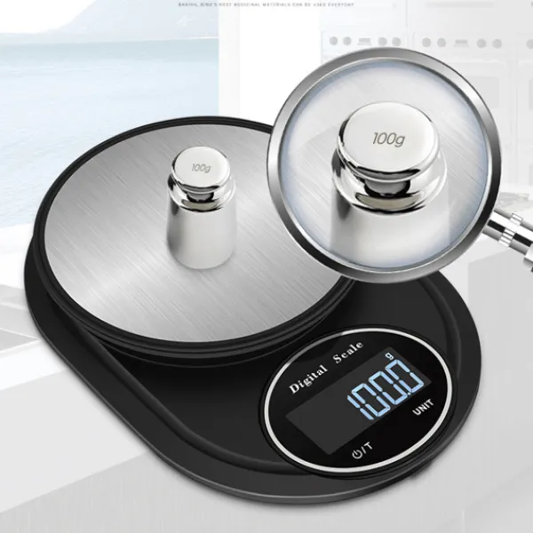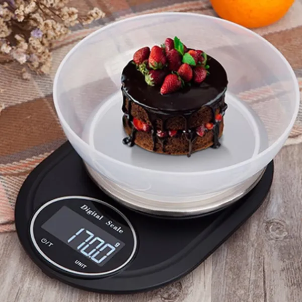 Brett vägningsområde: Med en kapacitet på upp till 5 kg och en precision på 0,1 g passar vågen för att väga allt från små ingredienser till större föremål.