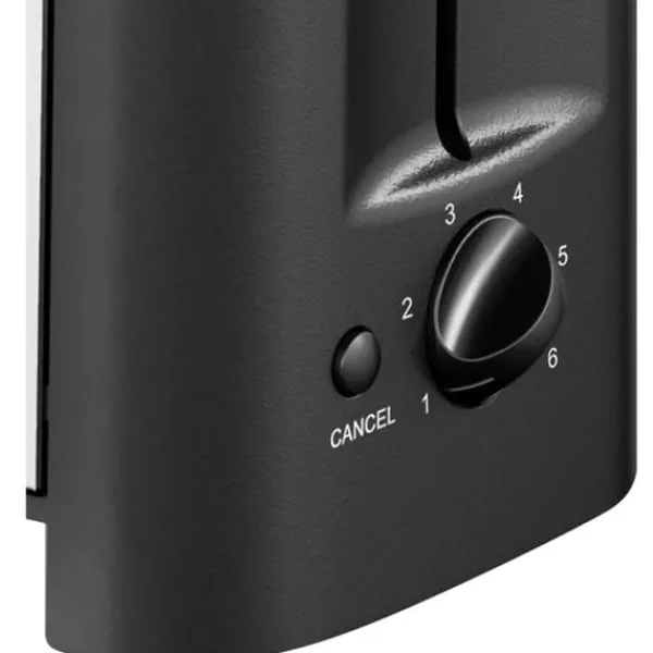 Brödrosten är elegant och modernt designad i svart och rostfritt stål och har ett justerbart reglage för inställning av 6 olika rostningsnivåer.