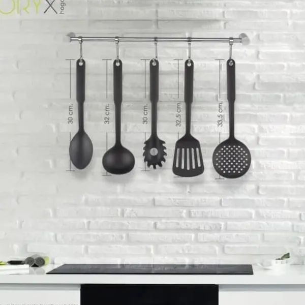 Espatula Rasera Köks Nylon Basic – Mått: 32,5 x 9 cm. – Tillverkad i nylon, ett lätt och hållbart material. – Hög termisk motståndskraft (upp till 240 C.) – Orsakar inga repor på grytor och stekpannor vid matlagning. – Kan diskas i diskmaskin. – Den är tillverkad i ett enda stycke, vilket ger ökad stabilitet samt underlättar rengöring. Espatula Rasera Köks Nylon Basic 32,5 x 9 cm.