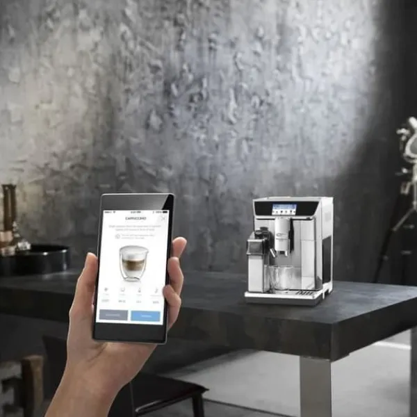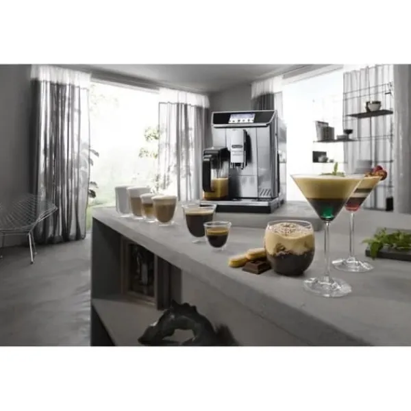 ELITE EXPERIENCE 4,3 ’TFT-pekskärm, direkt tillgång till favoritdrycker efter användarprofil, nya recept (kaffe, Cappuccino +, CappuccinoMix, Americano och Tea-funktion), zamac-finish, borstad metallram, termisk karaff, smart kaffe-APP, bönfack 400gr, 2L vattentank