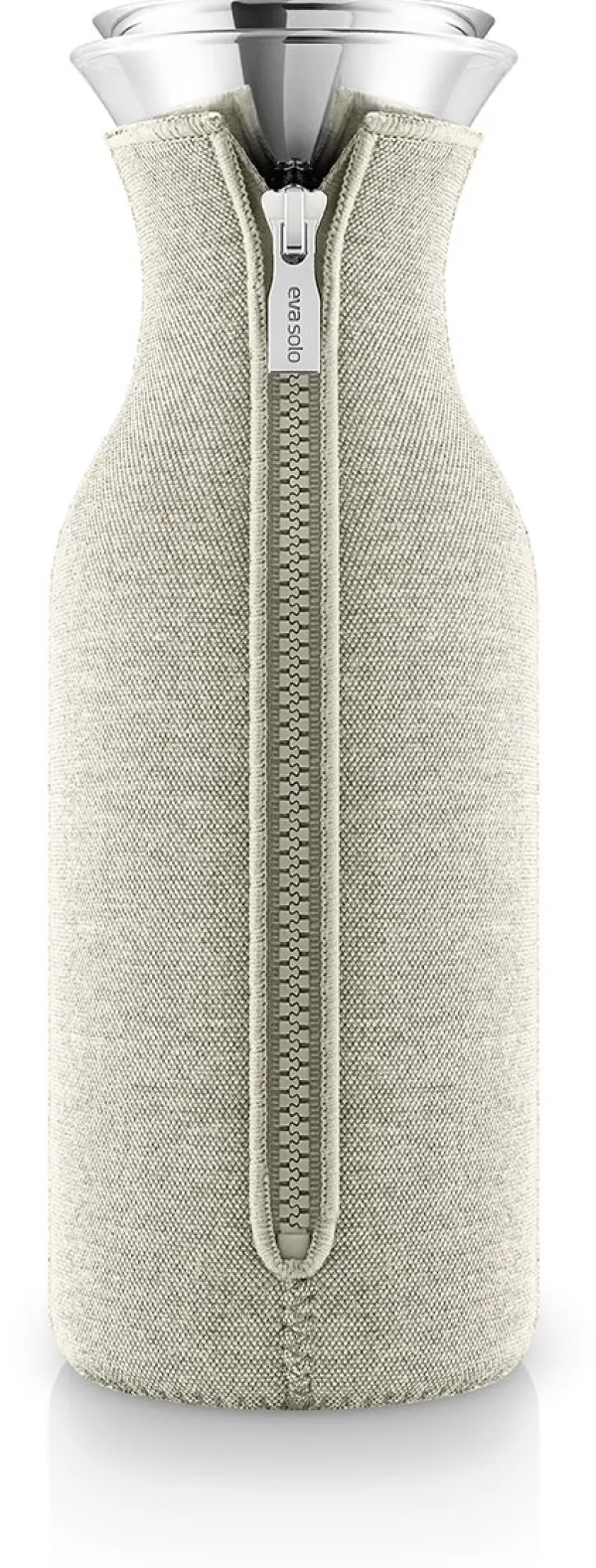 Karaffens distinkta lock är mer än bara en snygg accessoar. Det är tillverkat av neopren med en vävd textilyta och ger ett bekvämt grepp och hjälper till att hålla temperaturen på dina drycker. Oavsett om du vill hålla ditt iste kallt eller ditt glühwein varmt, klarar detta lock uppgiften. Dessutom absorberar det kondens, vilket förhindrar de där irriterande vattenringarna på köksbordet.