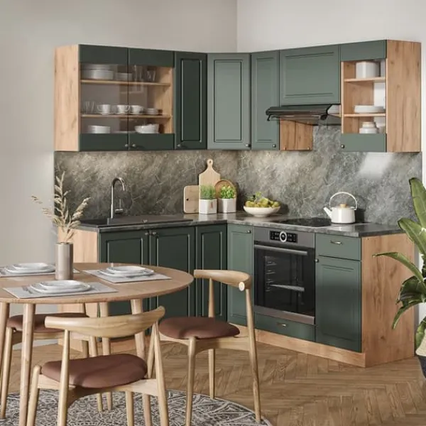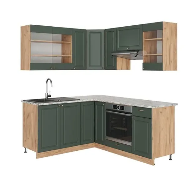 MATERIAL: Hörnköket är tillverkat av lättskött 16 mm spånskiva med melaminhartsbeläggning. Alla fronter på köksenheterna är gjorda av högkvalitativ MDF.