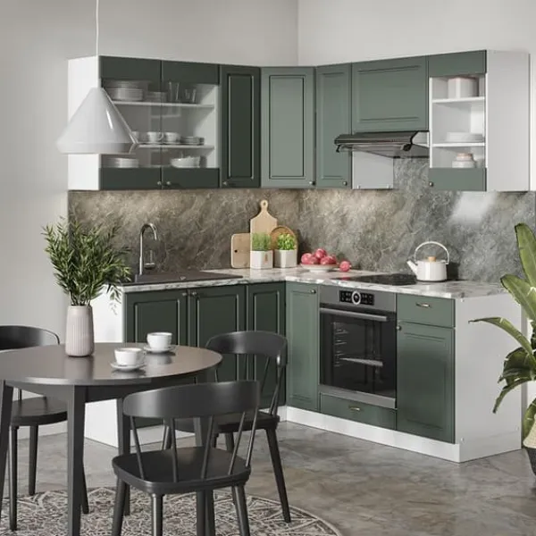 MATERIAL: Hörnköket är tillverkat av lättskött 16 mm spånskiva med melaminhartsbeläggning. Alla fronter på köksenheterna är gjorda av högkvalitativ MDF.