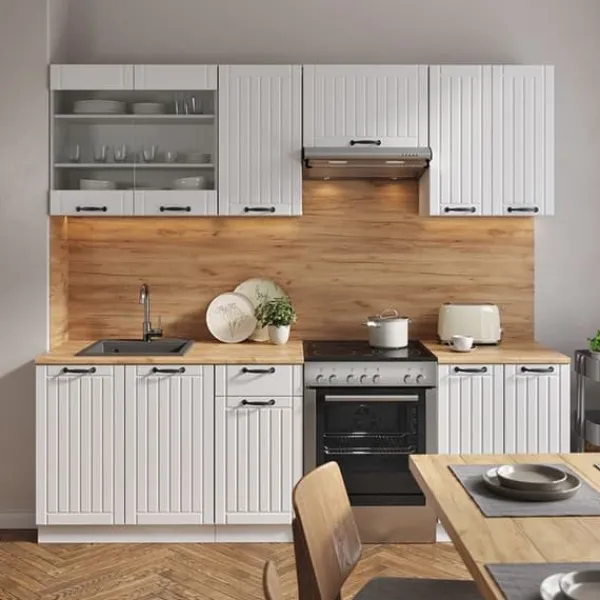 MATERIAL: Den modulära köket är tillverkad av 16 mm lättskötta spånskivor med ett ytskikt av melaminharpune. Alla fronter på köksenheterna är tillverkade av högkvalitativ MDF.