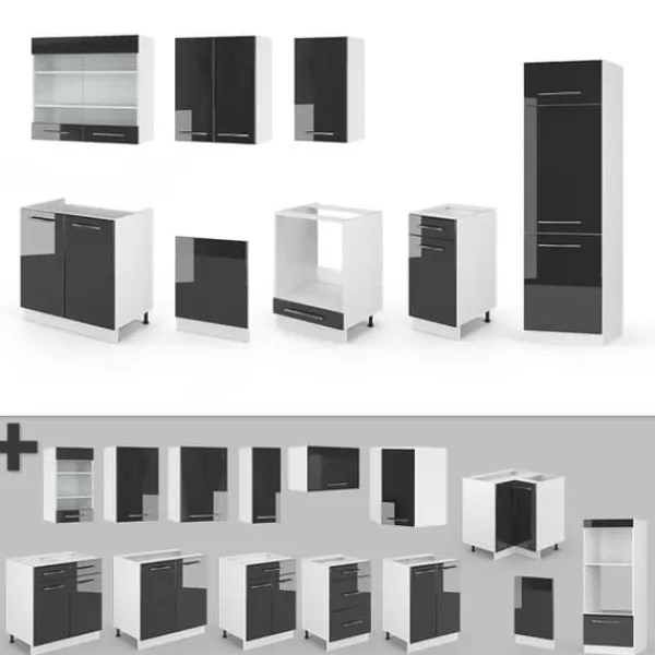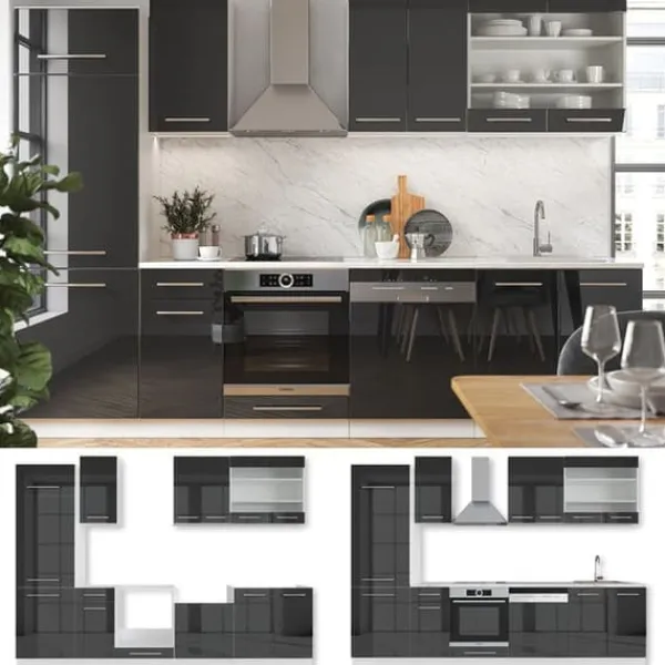 Fame-Line kök, 300 cm utan bänkskiva, antracit, Vicco