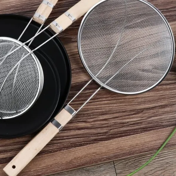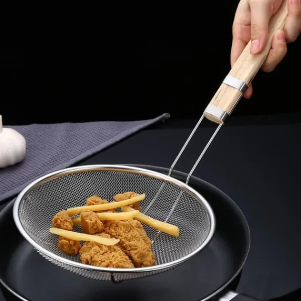 3, Robust och hållbar: Fry oil mesh-silen är gjord av rostfritt stål och ett robust trähandtag för att säkerställa långvarig användning.