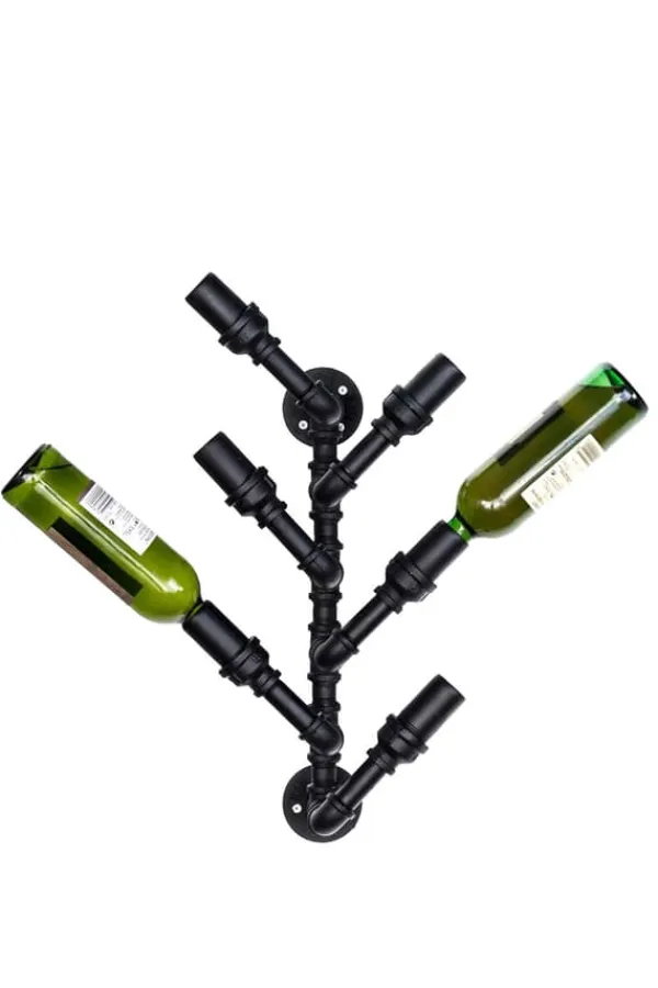Denna flaskhållare är ett riktigt blickfång! Den sofistikerade rörformade designen kommer att visa upp dina flaskor på ett unikt sätt! Den är gjord av robust svart metall, med industriella detaljer som perfekt kompletterar designen. Flaskhållaren finns i tre versioner och ger plats för upp till 8 flaskor. Den är fäst på väggen för att säkerställa nödvändig stabilitet. Få denna pärla till ditt hem direkt! Utan dekoration.