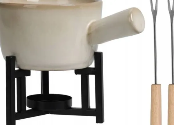 Eh Excellent Husgeråd Sūrio fondiu rinkinys, porcelianinis puodas, 2 šakutės