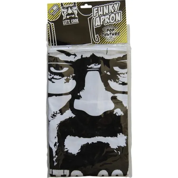 Förklädet är svart med en figur och text som lyder ”Let’s Cook”. Det är tillverkat i 100% bomull.