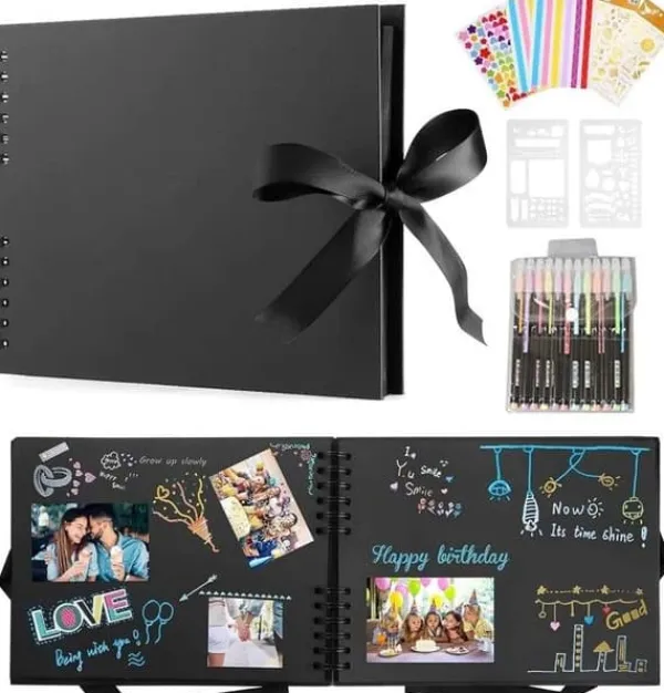 Hög kvalitet: Scrapbook-fotoalbumbok designad för 360 graders rotation, platt öppning, vilket gör det enkelt att se och klistra in.