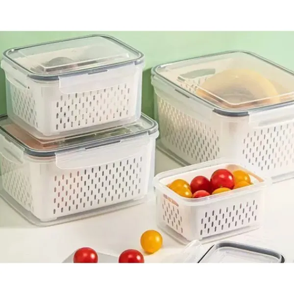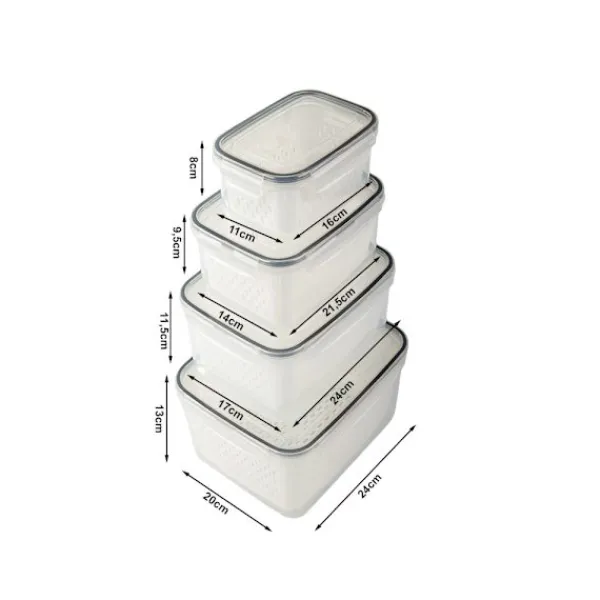 Are you looking for functional and reliable food storage solutions? This set of 4 containers has been designed to make everyday food storage and organisation easier. Ideal for home, work, school and travel, they ensure convenience, safety and freshness for longer.They are resistant to kitchen conditions. Thanks to their thoughtful design with removable baskets, it is easier to keep your refrigerator and cupboards tidy.