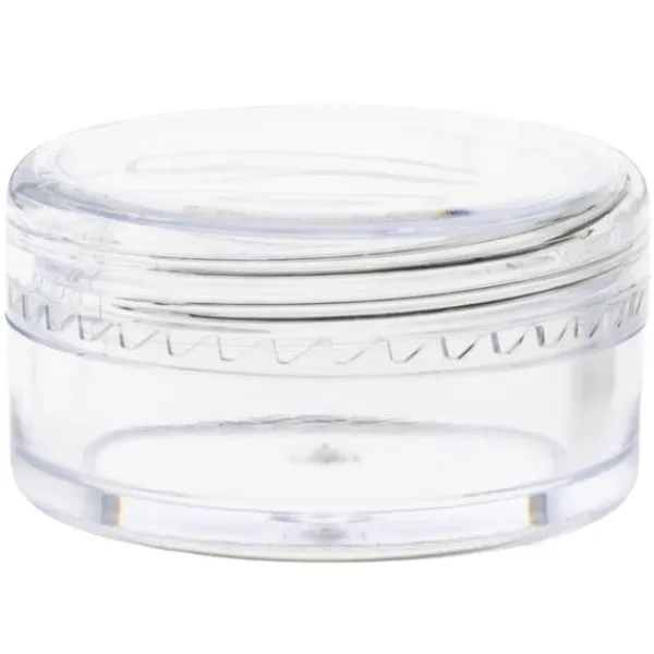 Burkbehållare färglös, 4 ml kapacitet, med genomskinligt lock, tillverkad av polystyren.
