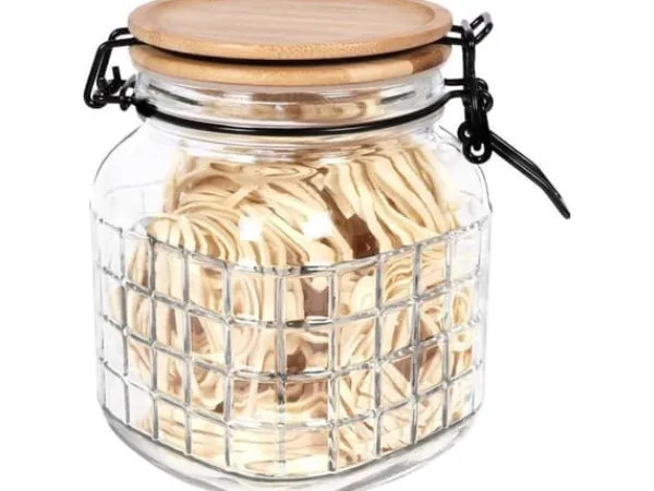Excellent Houseware Köksburk glasbehållare med bambulock patentklämma tät med försegling 1,1 l