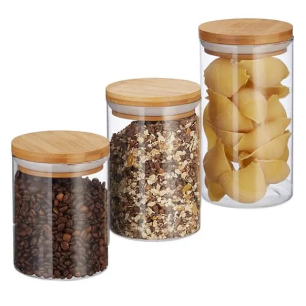 Bli först med att recensera ”Förvaringsburkar-Relaxdays Glasförvaringslådor, set om 3, storlekar 500, 700, 1000 ml, pasta, ris, flingor, kaffe, D 9,5 cm, bambu” Avbryt svar