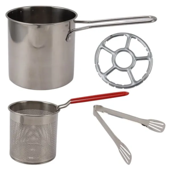 Artikeltyp: Fritös PanMaterial: 304 rostfritt stål Pottstorlek: Ca. 12x13x14cm / 4.7×5.1×5.5in Klämlängd: Ca. 23,5 cm/9,3 tum 1 x PotBody 1 x Drainer Basket 1 x FoodClamp 1 x Ugnstativ 1 x Handtag
