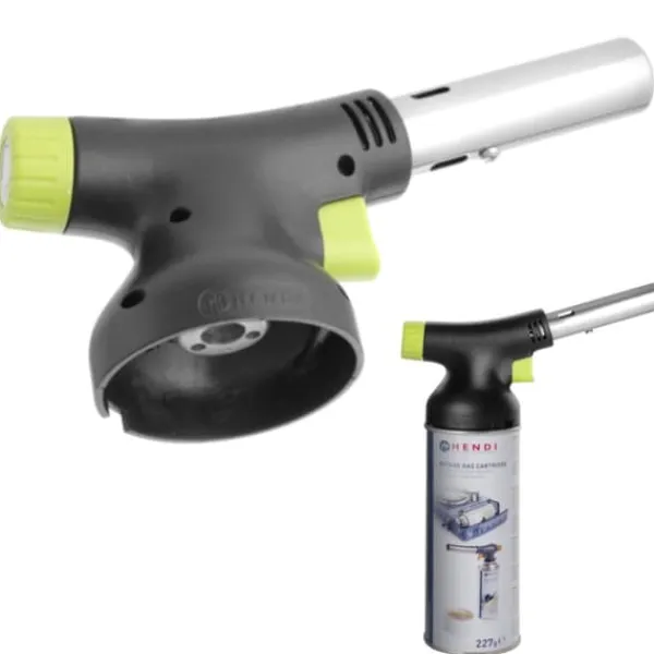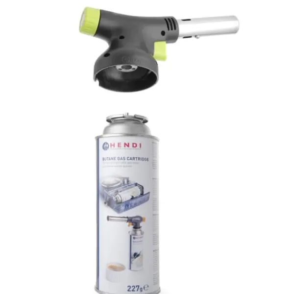 Producentens kode: 198247 Hendi gasbrænderen er perfekt til termisk behandling, fyring og andre kreative anvendelser i ethvert køkken. Brænderen er skabt i samarbejde med en af de bedste industrielle designere – Robert Bronwasser. Brænderen har en temperaturstabilisator – den opnår den optimale flammetemperatur fra første sekund – 1300°C. Gentagelighed opstår takket være BLUE HEAT-systemet. Brænderen har den længste branddyse på 100 mm. Gælleluftindtaget giver luftindtag med større kapacitet. Høj flammestyrke garanterer kulfri forbrænding. Brænderen har også jævn flammelængdekontrol i området 15-150 mm. Perfekt til garvning: sukkerarter, proteiner, oste, frugter, grøntsager og kød. Gaskappen er sammensat af et afdækningsdæksel og en enkelt-pass ventil, der giver permanent driftsbeskyttelse mod interferens fra flammer fra brændte råmaterialer på gasventilen. Den er pålidelig – flammeinitiatoren bruger elektriske udladninger som følge af mekanisk påvirkning. Du trykker på knappen og det virker – du behøver hverken udskifte slibestenene eller købe en anden brænder. Indikatoren placeret på sikkerhedsdækslet letter hurtig installation med et enkelt klik. Brænderen giver en jævn flamme i alle arbejdsstillinger og i enhver vinkel, også opad. Produktegenskaber: – Designet af Robert Bronwasser med kokke i tankerne, – Moderne design: matsort med grøn accent, ergonomisk håndtag, – Jævn flamme i alle arbejdsstillinger, også rettet opad, – Nem og sikker installation af gaspatronbrænderen, – Den piezoelektriske tænder giver dig mulighed for nemt at tænde brænderen, – Den store gasknap giver dig mulighed for nemt at justere størrelsen og intensiteten af flammen. Tekniske parametre: – Katalognummer – 198247 – Stand – Ny – Mål – 185x65x(H)100 mm Sættet indeholder: – Kokkebrænder – INGEN INDSÆT MEDFØLGER