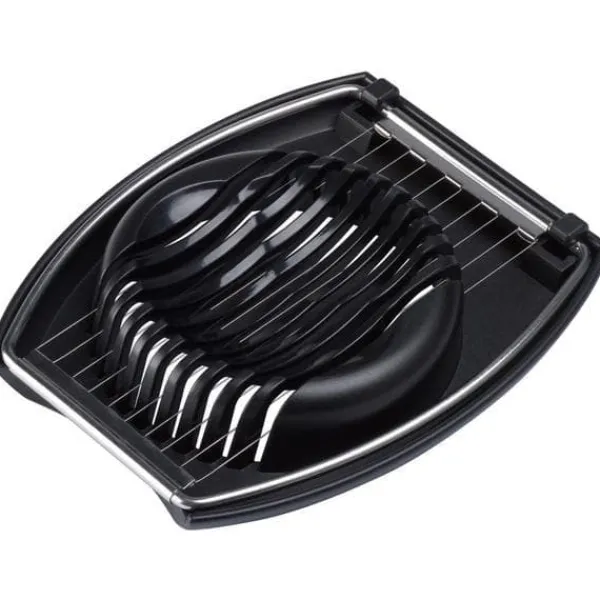 Skivar hårdkokta ägg i perfekta 5 mm skivor med en press.