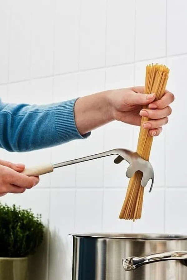 Perfekt för att servera spagetti, nudlar och annan pasta, och det smarta hålet i mitten hjälper dig att enkelt mäta upp en portion okokt spagetti. Sleven är dessutom tillverkad i Sverige och tål maskindisk, vilket gör den både hållbar och enkel att rengöra.