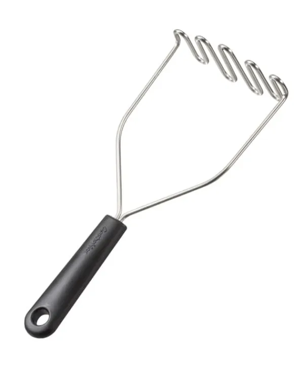 Stadig press i rostfritt stål med stadigt och ergonomiskt handtag i plast.