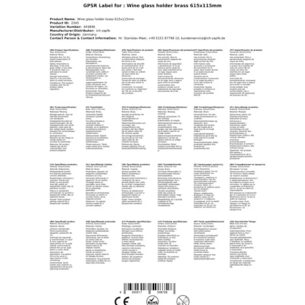 Glashängare mässing 685x145mm – 685×145 mm Till den bakre, skenorna och är smal, så att inte falla ut k ouml glasen. Högsta tillåtna glasgolvet har en diameter på 9 cm.