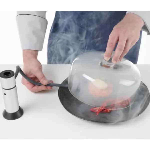 Programnavn: HENDI 199978 Hendi glaskuplen til rygning af mad på en tallerken er et kar designet til at blive brugt sammen med en rygende pistol. Dette giver dig mulighed for at servere retter på en meget spektakulær måde. Egenskaber og funktioner: – lavet af glas, – behageligt håndtag, – dimensioner (Diameter x Højde): 245 x 150 mm. Sættet indeholder: – glaskuppel til rygning og servering af mad på tallerken.