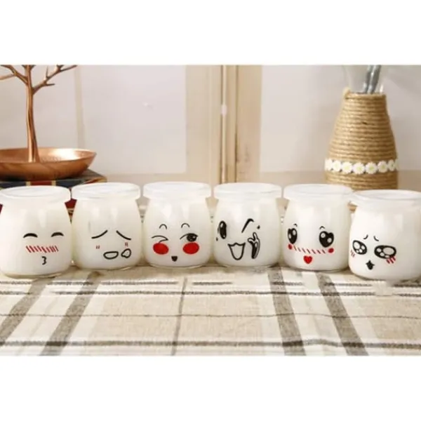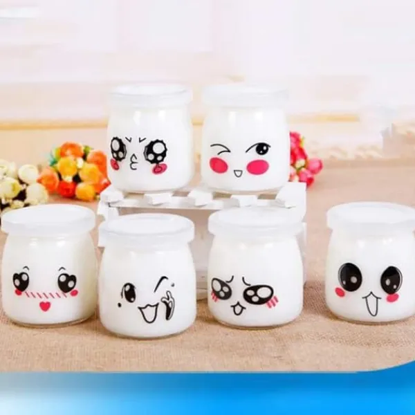 Dessa puddingflaskor har en kapacitet på 100 ml och är bakade i tecknade stilar. Flaskan är liten och utsökt, tillverkad av transparent glas, så att du kan se innehållet direkt. Flaskan är målad med en mängd olika livfulla och intressanta tecknade uttryck, som blyg, rolig, söt, etc., vilket gör flaskan full av livlig och lekfull atmosfär, vilket kan ge en roligare miljö. Den är lämplig för att förvara pudding, yoghurt och andra livsmedel. Den är både praktisk och dekorativ. Som produktförpackning kan den öka attraktiviteten.