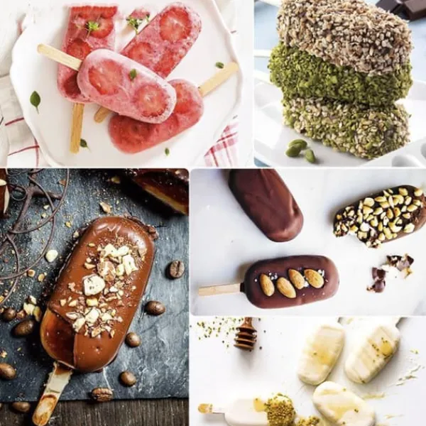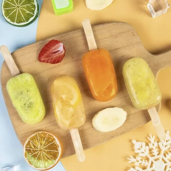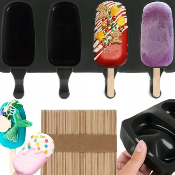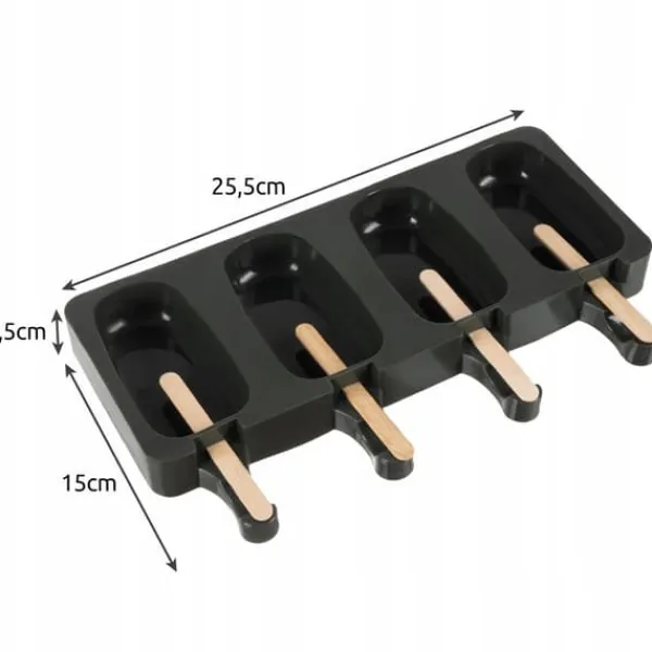 Vad är godare än en iskall glass en varm sommardag? Med denna flexibla silikonform gör du enkelt din egen favoritglass, något som garanterat kommer att imponera på vänner och familj. Silikonformen har 4 hål där du häller i juice, yoghurt eller frukt och sedan stoppar in i frysen. För att sedan ta bort den färdiga glassen häller du varmt vatten över formen. Medföljer gör även 50 glasspinnar i trä som sticks in genom hål i formen.