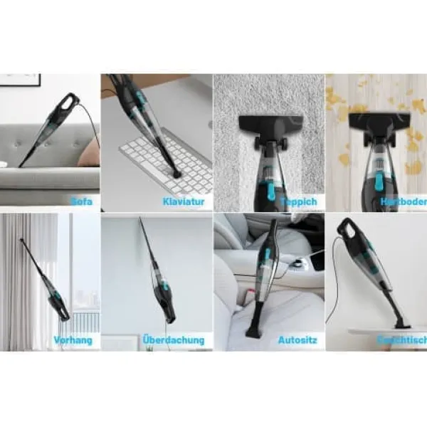 Levereras med golvmunstycke, springmunstycke, borstmunstycke och 9 flerfunktions-tillbehör, vilket gör det enkelt att rengöra soffor, hörn och andra svåråtkomliga områden.