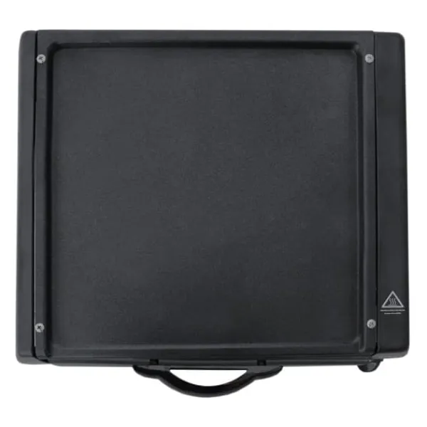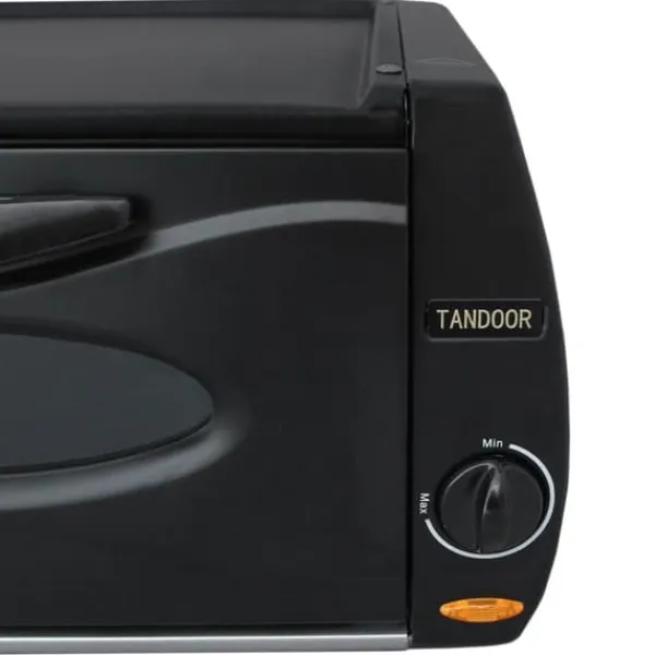 Ovansidan har en non-stick-beläggning så att mat inte fastnar och framsidan har ett värmetåligt säkerhetsglas för ökad säkerhet. Ugnen har även en termostat som ger dig full kontroll över temperaturen så att du får ett perfekt resultat varje gång. För att göra matlagningen enklare skickar vi även med en gratis matlagningstång.