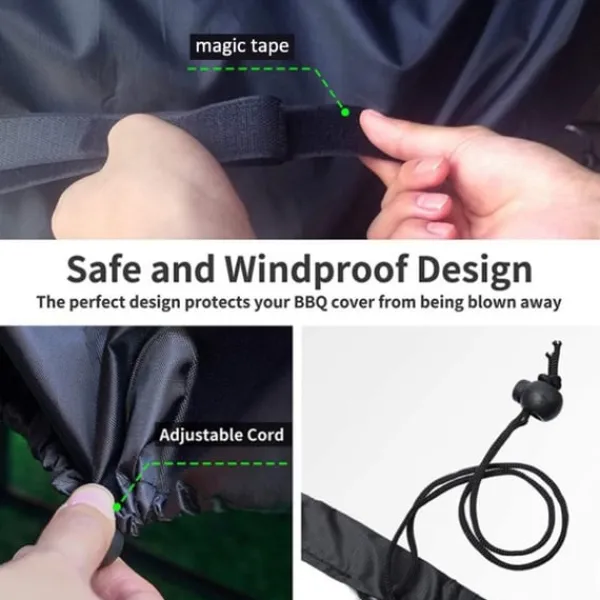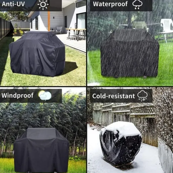 - Väderskydd: Förhindrar skador från starka vindar, regn, stormar, intensivt solsken, damm och snö. Håller din grill i toppskick.