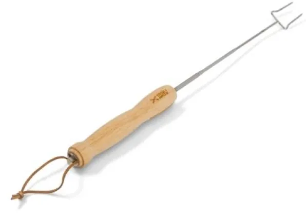 Gaffelns hullingar gör att det som ska grillas sitter stadigt på pinnen och minskar risken att maten hamnar i grillen/elden. I sin fulla längd mäter grillpinnen 80 cm.