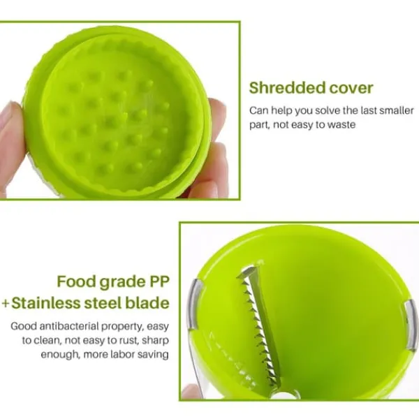 Välkommen till vår butik! Denna mångsidiga grönsaksskärare är designad för effektivitet och bekvämlighet i ditt kök. Den har ett vasst blad i rostfritt stål som snabbt strimlar och skär av filament, vilket sparar värdefull tid under matlagningen. Perfekt för att skiva grönsaker, skapa sallader och tillaga pommes frites till barn, och säkerställer enkel och omedelbar matlagning. Denna skärare är tillverkad av högkvalitativ ABS-plast och rostbeständigt rostfritt stål, är hållbar och lätt att rengöra med en enkel sköljning under vatten. Den säkra designen möjliggör lätt rotation för att skära utan risk för handskador, och det medföljande strimlade locket hjälper till att minimera matsvinn. Med ett brett användningsområde är den perfekt för att riva choklad, ost, hårda frukter och mer, vilket gör den utmärkt för att dekorera kakor och förbättra olika rätter. Produktmåtten är 13 cm x 7 cm, och du får 1 grönsaksskärare per beställning. Nöjdhet: Våra kunder är vår högsta prioritet. Om du upptäcker några produktproblem efter att du mottagit varorna, såsom skador och felaktig mängd varor, vänligen kontakta säljaren omedelbart. Vi gör vårt bästa för att ge dig tillfredsställande kundservice.