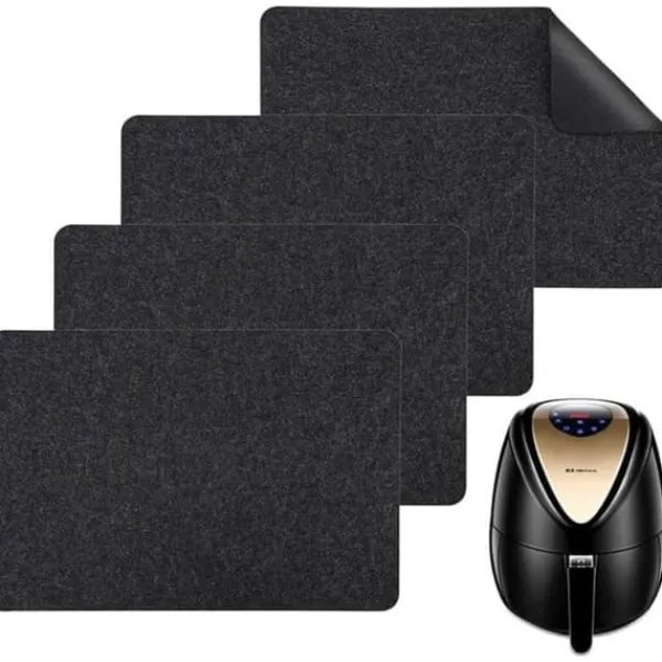 [Repskydd] Detta bänkskydd är tillverkat av filt för att effektivt förhindra repor. Det är tvättbart, säkert och pålitligt, hållbart och av kompromisslös kvalitet. [Halkskydd och värmebeständigt] Mattan är tillverkad av ren filt på ena sidan och täckt med täta silikonprickar i halkskydd på den andra sidan. Dessa halkskydd förbättrar stabiliteten och förhindrar att apparater glider. Mattan har också utmärkta värmeisoleringsegenskaper för att skydda dina vackra granitverk. [Lätt att använda] Denna matta är utformad för små apparater, vilket gör det enkelt för dig att flytta airfryers, kaffemaskiner, brödmaskiner etc. från skafferiet till köksbänkskivan. Den möjliggör smidig riktningsrörelse, vilket gör användningen till en barnlek. [Högkvalitativa material] Denna matta är tillverkad av gummi och filt, vilket ger maximal komfort vid användning. Den svarta färgen ger en touch av mode till din köksdekoration.【Flera valmöjligheter】Denna matta har en storlek på 12 x 17 tum/30*44 cm,
