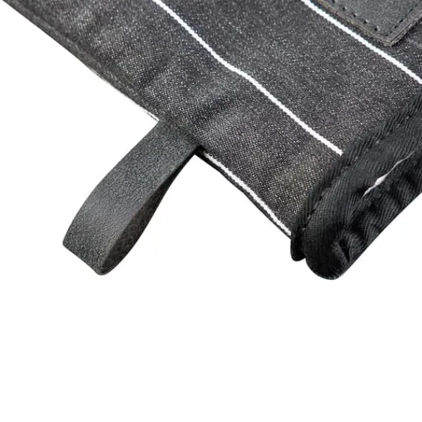 Ugnshandskarna är designade med hängöglor för enkel förvaring, så att du smidigt kan hänga upp dem på ditt köksställ. Kombinationen av 100% ekologisk, vattentålig bomull och detaljer i veganskt läder gör dessa handskar både praktiska och eleganta. Handskarna är värmebeständiga upp till 250°C, vilket ger trygghet och skydd när du hanterar varma redskap.