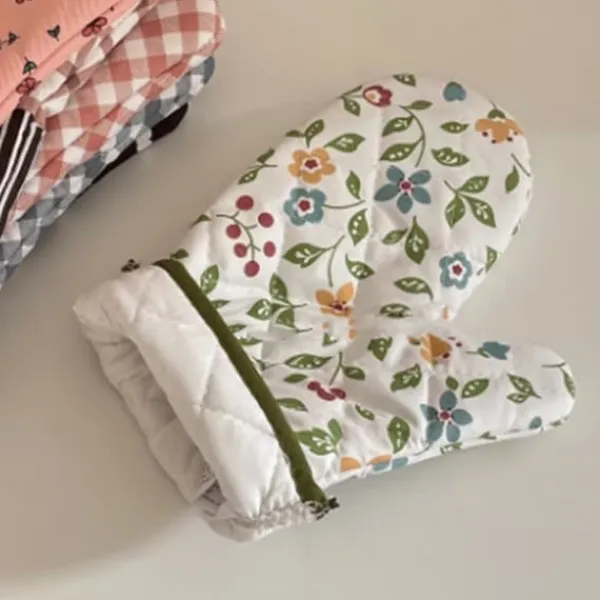 Varje handske är utrustad med ett snöre för bekväm upphängning och förvaring, vilket gör dem lätta att komma åt när du behöver dem. De delikata blom- och gräsmönstren lägger till en touch av elegans till ditt kök, vilket förbättrar den övergripande matlagningsupplevelsen.