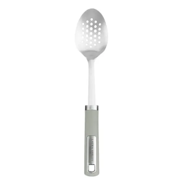 Den hålade skeden från Laura Ashley är ett mångsidigt och oumbärligt köksredskap, utformat för att underlätta matlagning och servering. Dess mjuka handtag ger ett bekvämt och halkfritt grepp, vilket förebygger trötthet och gör beredningen och serveringen trevligare. De precisionsspalt som finns gör att vätskor effektivt kan rinna av, vilket gör den till det perfekta verktyget för att servera både pasta och känsliga grönsaker.