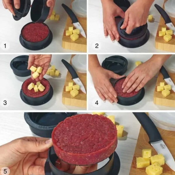 Denna LACOR hamburgarpresser i högkvalitativt ABS-plast gör det enkelt att förbereda hamburgare. Kompakt och praktisk, den kan förvaras i en del. Inkluderar 60 non-stick ark. Mått: 12,5 x 12,5 x 6 cm, vikt: 171 g. Lätt att rengöra och diskmaskinssäker.